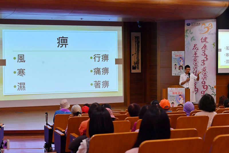 沈主任於講座中示範簡單易學的保養穴位,合谷穴、手三里穴:能改善上肢痠痛、放鬆肩臂肌群;後谿穴:位於手掌外側,可提升頸部活動度,改善僵硬感;束骨穴:透過膀胱經的經絡連動,緩解背部與下肢緊繃。同時,沈醫師也介紹中醫治療常用的「謬刺」、「巨刺」以及「遠道刺」,透過遠端穴位調整頸部張力,有助緩解慢性僵硬疼痛。