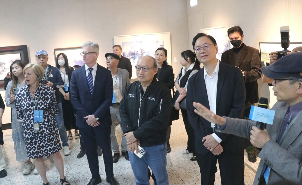 【記者鍾陽正桃園報導】桃園市政府持續推動國際藝術交流與在地文化能量,今年壓軸登場的活水—2025桃園國際水彩雙年展《觸動Touching》」,於11/28日至12/28日在文化局第一、二展覽室及2、3樓藝廊盛大展出,並於28日隆重舉行開幕,由市長張善政與文化局長邱正生、市議員陳美梅、桃園區副區長邱創正、澳洲辦事處代表馮國斌(Robert Fergusson)、策展人廖新田、王公澤、游雯珍及參展藝術家等共同啟動亮點儀式。隨即策展人、國內外參展藝術家與現場貴賓及民眾進行作品導覽解說。