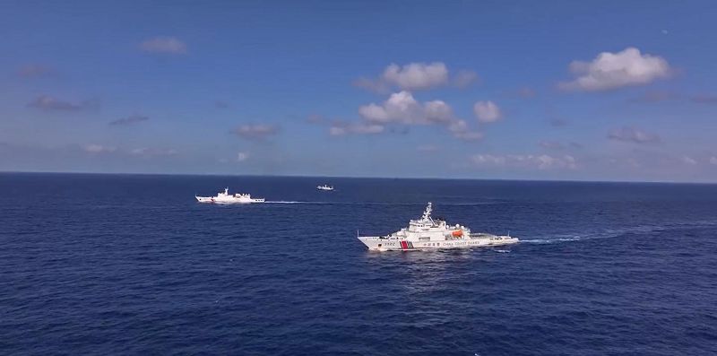 大陸海警發布多艘海警船在黃岩島海域巡邏影片。(中國海警發布)