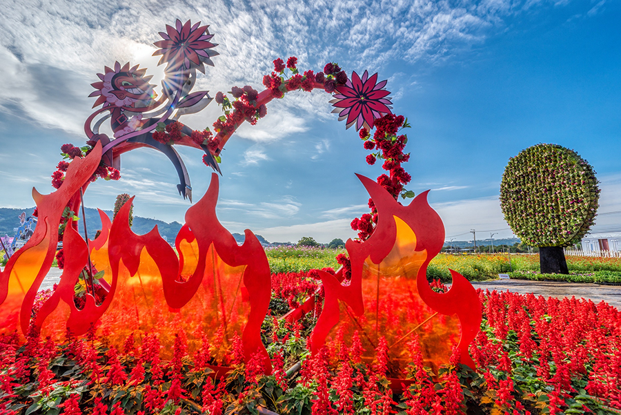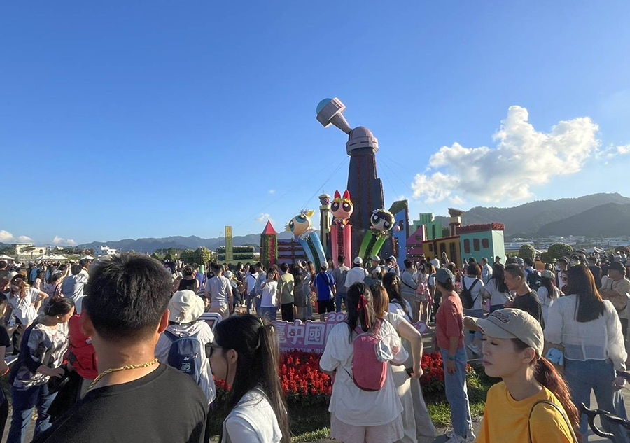 台中市觀旅局長陳美秀表示,今年新社花海花毯節以「動畫元素 × 花卉藝術 × 永續共創」為策展核心,將備受喜愛的飛天小女警經典元素與在地花卉巧妙融合。現場共有15個裝置及角色立牌,是歷年最多。