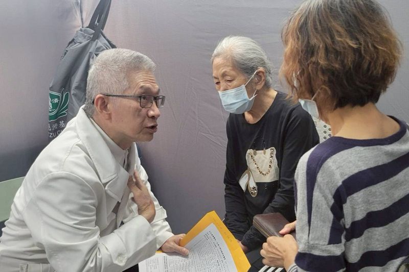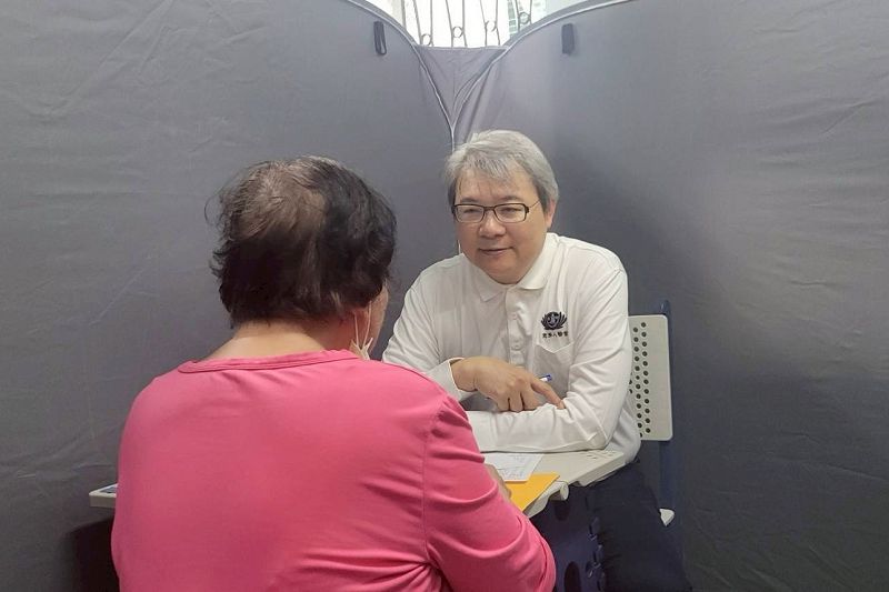 骨科醫師鮑卓倫表示,今天前來就醫的多以年長者為主,其中不少人已接受過多次手術,也常因長期彎腰駝背與歲月累積的病痛而有明顯的脊椎退化。近期水災更讓許多長輩舊疾復發,出現腰痠背痛、坐骨神經痛等不適。鮑卓倫指出,在義診現場雖然沒有醫院的儀器可以檢查,只能依靠問診與理學檢查來提供建議,但其實長輩們的需求並不複雜。「我們用心傾聽、給一些方向,他們就很開心、也感到安心滿足。」