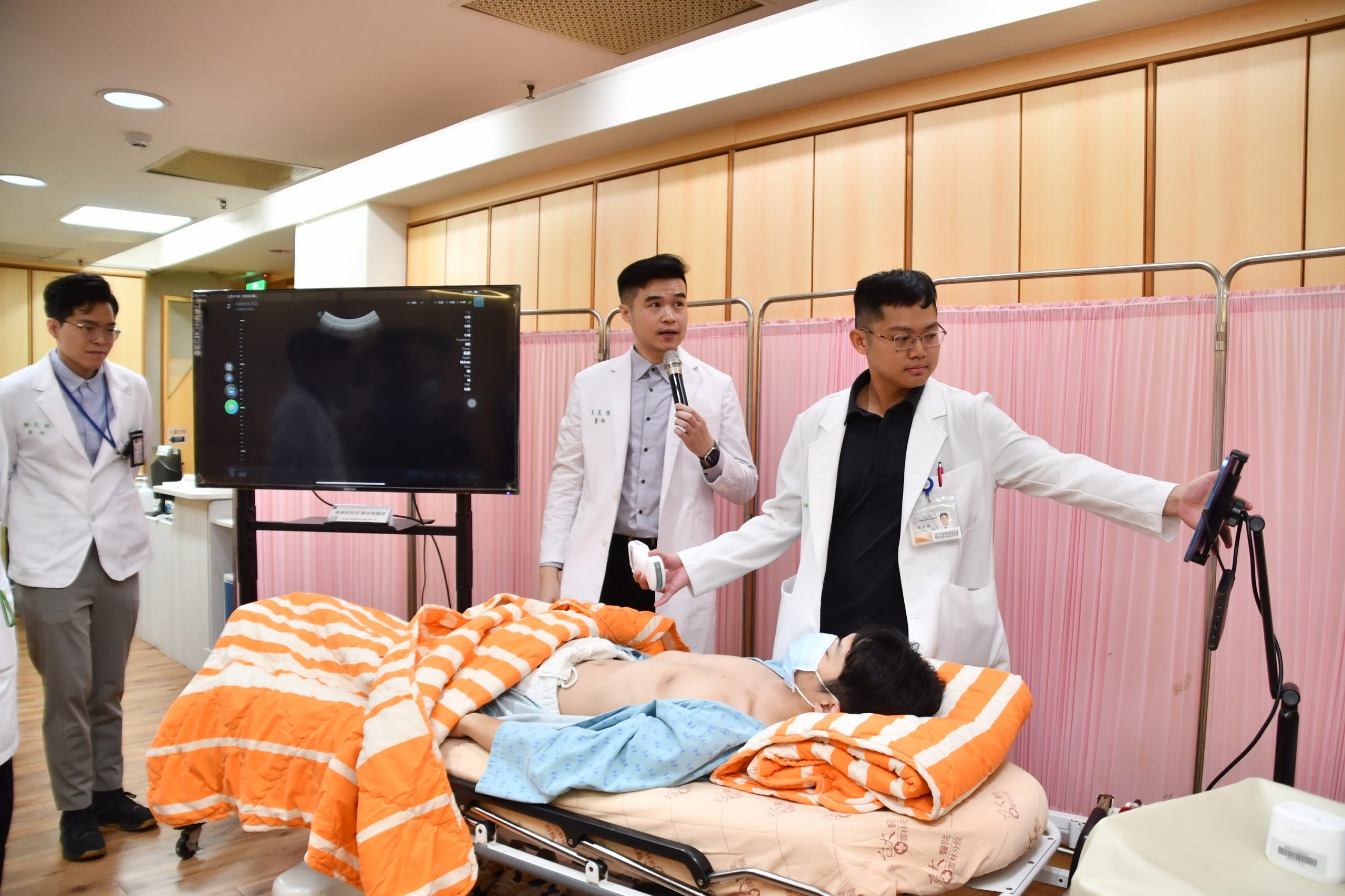 PGY醫師現場示範操錯手持式超音波設備,呈現更高診斷效率。(記者蔡鳳敏攝)