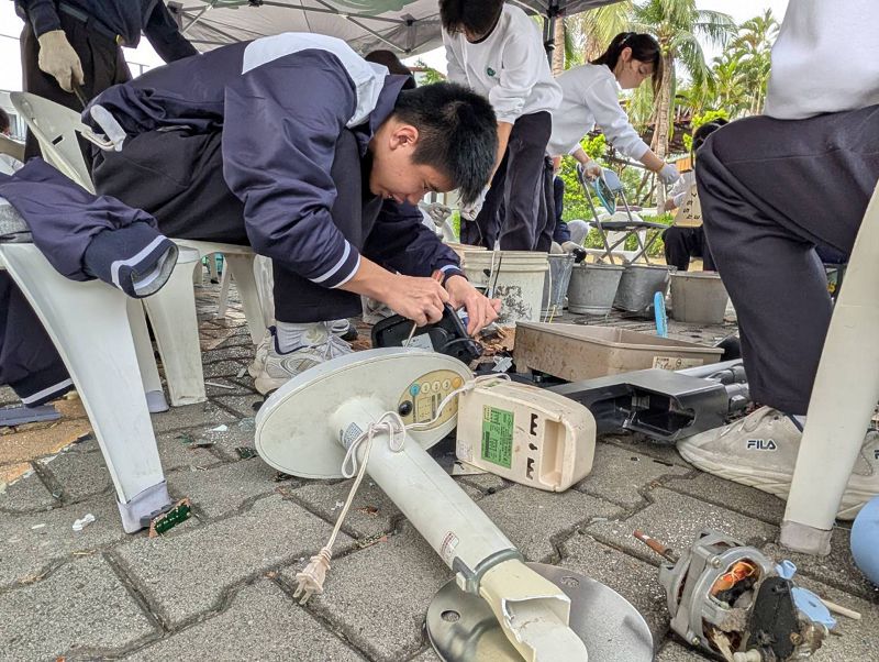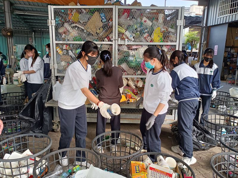 仁德環保站的拆解區是學生感到最舒壓的站別,在拆寶特瓶環時,學生們也第一次親身感受原來倒空瓶身、清潔源頭這麼重要!塑膠分類看似簡單卻大有學問,修剪、折整、分類,每一個動作都需要耐心,好在每一處站點都有師姑、師伯及環保菩薩的陪伴,引導學生環保回收分類的每一個小步驟,一同為守護地球盡心盡力。