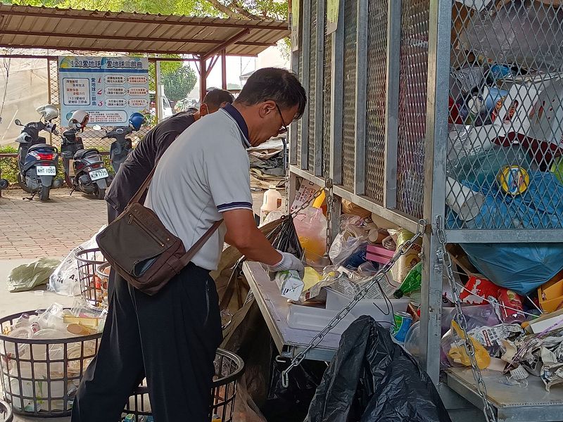 分站實作開始,在綜合分類區,曾去過其他慈濟環保教育站的高一和氣廖同學,很快就發現正意環保站的一項貼心設計──架高的鐵架將大量綜合回收物架高離地面,並隨著回收分類的動作,上層的回收物會自動往下沉。廖同學發現這樣的設計,可以使上了年紀的師姑、師伯和環保菩薩不必一直彎著腰做分類,避免腰酸背痛的傷害。