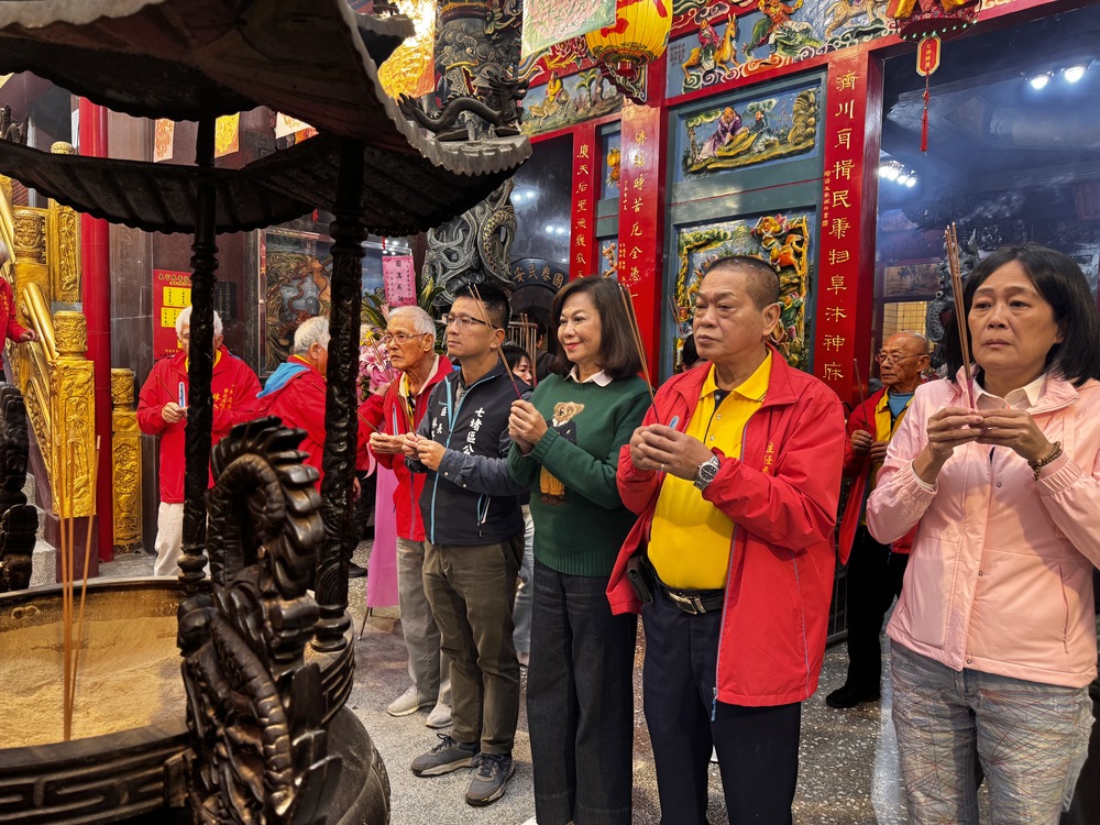 【記者張毅基隆報導】天樞上相諸葛孔明聖尊去年1月6日駐駕七堵慶濟宮,4日出巡移駕台北木柵指南宮,基隆市副市長邱佩琳出席宗教文化交流,並與指南宮管理團隊以及副議長楊秀玉及慶濟宮主委柯金標等人,共同為國運、市政祈福,北市府由秘書長李泰興率隊出席,現場氣氛溫馨隆重。