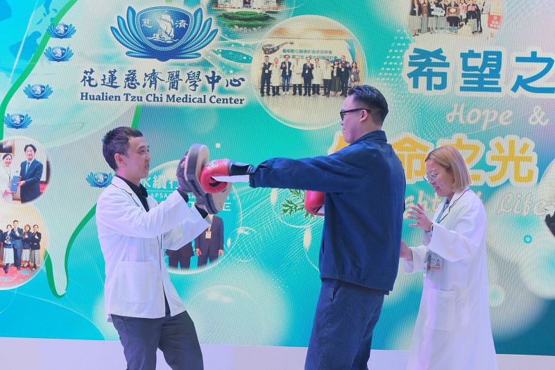 林欣榮院長以及何宗融副院長親自見證「精準中西醫合療」的成果。林院長表示,花蓮慈濟是全世界唯一可以結合細胞療法、中西醫精準治療脊髓損傷的醫院,從洺哲的故事可以看到生命中病苦最苦,但在醫病互信合作下,展現醫療的奇蹟,洺哲努力走出病苦,也從生命走入生命,並幫助其他受苦的人。