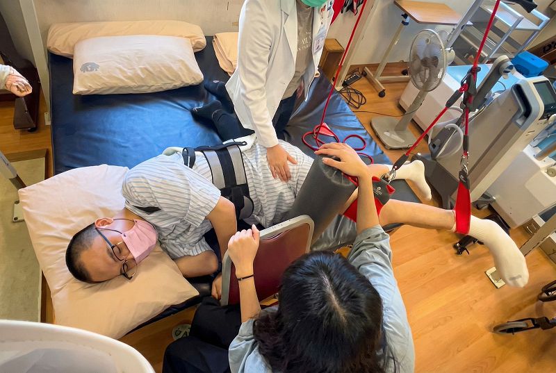 術後,洺哲後轉往脊髓損傷神經中心,由神經外科部蔡昇宗主任接手。洺哲記得當時還在插管時,中西醫合療就已經搶在黃金治療期介入,中醫部針灸科林郁甯主任及團隊就開始為他針灸,物理治療師吳明勇帶領他做有助神經恢復的各項復健。