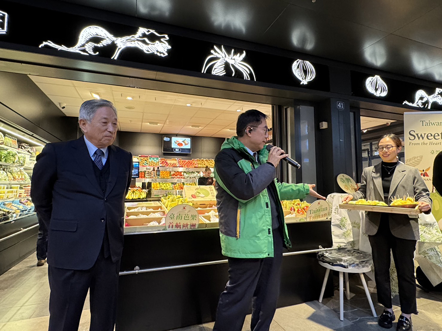 黃市長指出,除了芭樂與鳳梨,明年台南也將積極把鳳梨、芒果、芭樂帶進歐洲,盼一年四季水果供貨不間斷,讓台灣的國民水果,成為歐洲餐桌上的精品水果,更重要的是為具備優良種植技術的果農拚外銷、找市場。