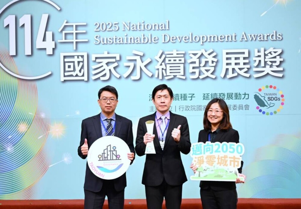 【記者徐玉英桃園報導】桃園市環保局獲得多項國際獎項的「AI環境污染辨識系統」,在147個參獎單位中脫穎而出,榮獲本屆「國家永續發展獎」政府機關類獎項。8日於行政院國家永續發展委員會舉行頒獎典禮,由環保局長顏己喨代表受獎。此獎項被視為永續治理領域的最高榮譽,顯示桃園在智慧環境管理的推動成果已達國家級標竿。