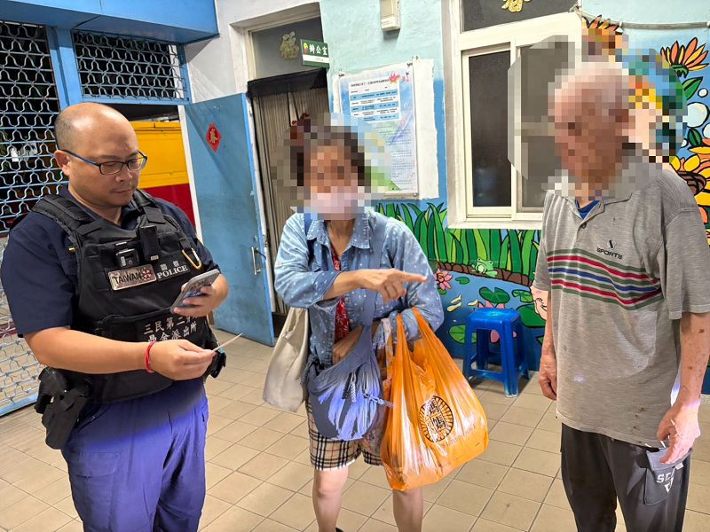三民第二分局鼎金派出所警員蔡哲玄、黃煜勝日前巡邏時,在三民區河堤路與天祥一路口見一民眾走路搖晃四處張望,神情緊張疑似不熟悉路況,隨即上前詢問關心。經了解,蘇姓老翁(87歲)當日下午自家中徒步外出散心,途中迷失方向,越走越遠,歷時約兩小時仍無法找到返家路線。所幸老翁身上攜帶身分證,幫助員警第一時間查得老翁身分,並成功聯繫上其女兒前來接回。等待家屬期間,員警貼心陪伴老翁並與其談話安撫情緒。隨後家屬趕抵現場,對警方的細心協助深表感謝,並肯定鼎金派出所展現的熱心與責任感。【圖文:記者張福全】