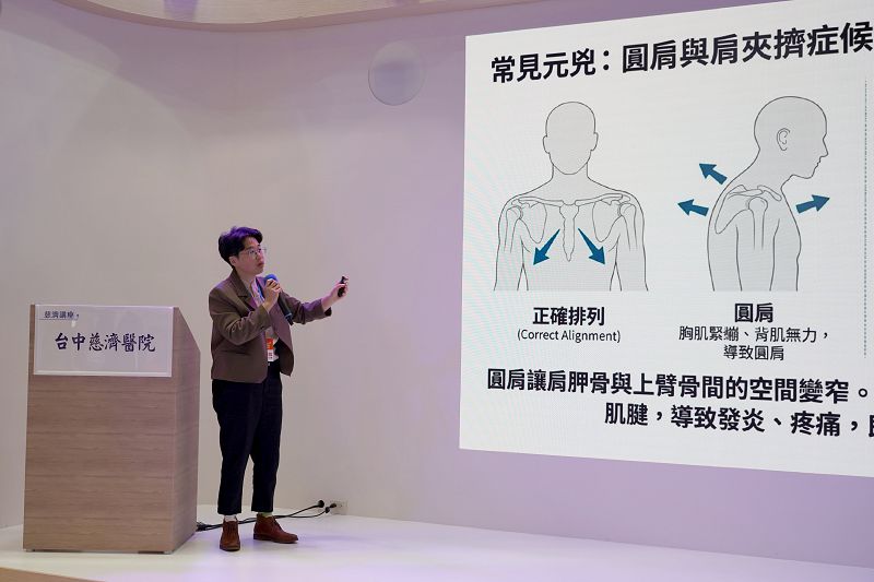 台中慈濟醫院復健醫學部主任蔡森蔚與醫師陳佳菁,五日在台灣醫療科技展發表「中風後神經功能障礙與長期姿勢不良引發的慢性痠痛」的臨床最新進展,內容聚焦在能喚醒受損腦區的「重複性跨顱磁刺激術(rTMS)」及運用人工智慧技術的「AI智慧姿勢評估系統」,展示醫療科技協助病人從大腦神經到肢體結構,由內而外精準修復,帶來復健領域檢測與治療模式的新突破。