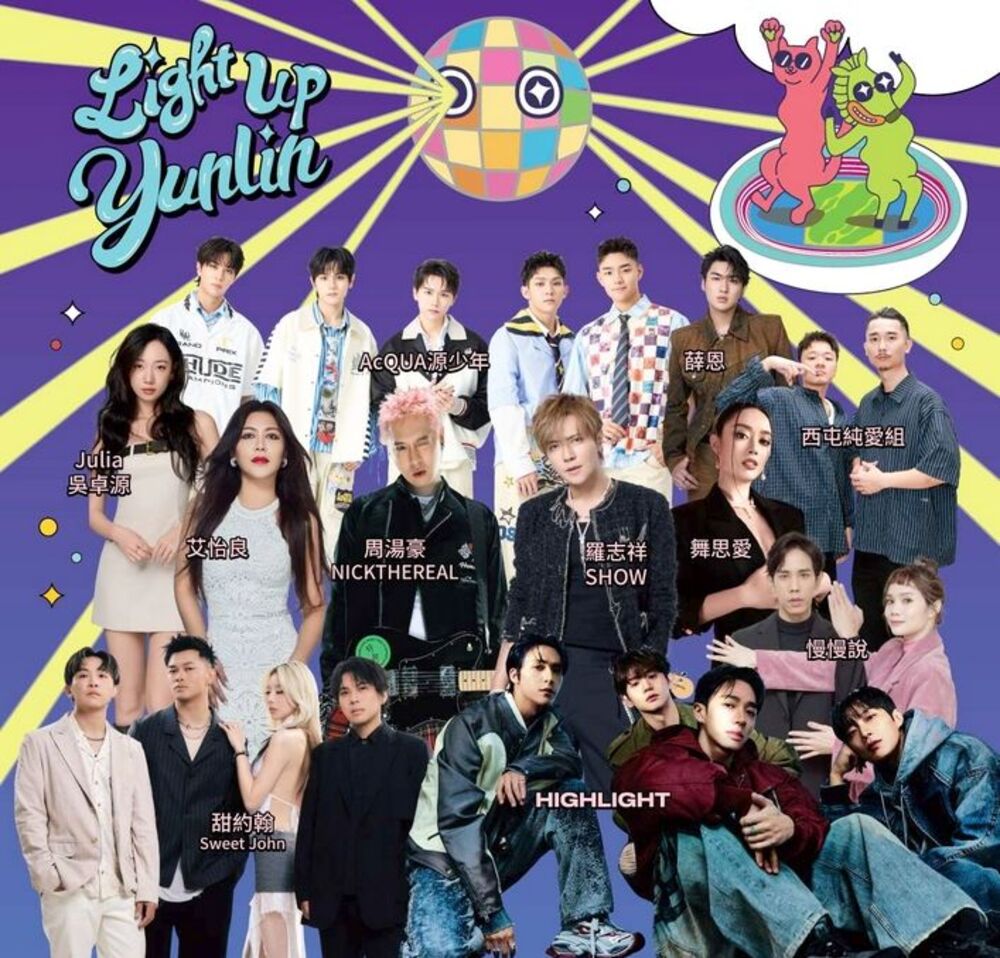 文觀處長陳璧君指出,今年跨年晚會共邀請11組演出陣容,包括:HIGHLIGHT、羅志祥、周湯豪、艾怡良、舞思愛、吳卓源、AcQUA 源少年、薛恩、慢慢說、甜約翰、西屯純愛組。節目內容跨足流行、嘻哈、金曲演唱與韓流舞台,規模與陣容均屬全國頂級。跨年晚會將於12月31日晚間6時在雲林縣立田徑場登場,採免費入場。晚會規劃半環場弧形煙火與國際級視聽設備,並於雲林縣政府臉書、YouTube、八大電視 YouTube全程直播;八大綜合台CH28自晚間8時起進行電視轉播。