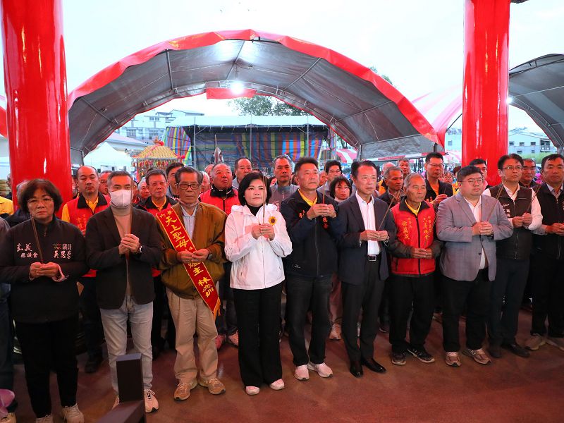 【記者謝敏政嘉義報導】雲林六房天上聖母睽違10年,再度來到嘉義縣大林鎮延香賜福。13日晚間,六房媽駐駕在新建啟用的福德爺文武財神廟,14日清晨,嘉義縣長翁章梁、雲林縣長張麗善、立法委員蔡易餘、丁學忠、嘉義縣議員吳思蓉、江志明、大林鎮長許有疆等貴賓皆親臨現場,隨香參拜,恭迎六房媽起駕。