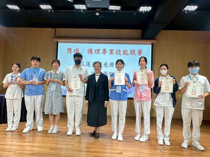 十二月五日,慈濟大學護理學系、護理科聯合舉辦「第四屆大愛盃全國校際護理臨床實務技能競賽」,吸引12所大專校院、130名護理系學生齊聚建國校區,展開臨床技能切磋賽。競賽項目包含醫護英文術語與病歷閱讀、護病溝通,以及護理專業技能三大主題,以團體方式進行,全面考驗參賽者的臨床判斷、溝通技巧與團隊協作。