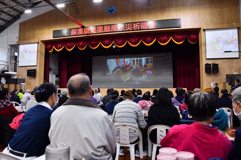 慈濟與蘇澳鎮公所、蘇澳鎮民代表會合辦鳳凰颱風災後祈福會,12月6日下午在蘇澳高級海事水產職業學校活動中心舉辦。與會人員包含張勝德議長、謝正信議員、鎮長李明哲、當地里長們以及鄉親出席。活動在慈濟志工手語帶動展開序幕,靜思精舍法師出席送上證嚴法師福慧紅包祝福鄉親。