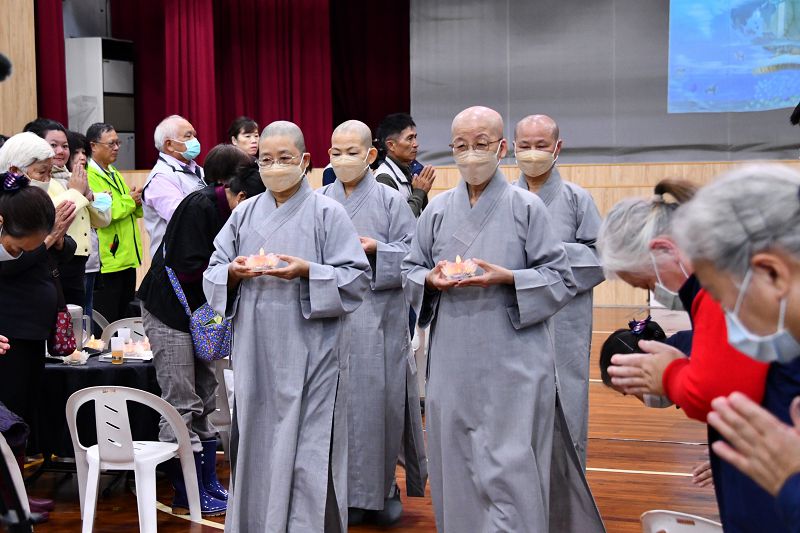靜思精舍法師代表證嚴法師與所有精舍師父出席祈福會,德淵法師致詞提及,回想11月11日聽到宜蘭風雨大,證嚴上人就慈示我們要關心宜蘭慈濟人。感恩宜蘭慈濟人動員付出,發揮那份慈悲心走在菩薩道,關懷鄉親,祈禱天下無災難。