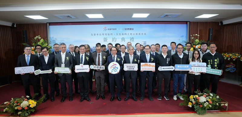 【記者陳志昌高雄報導】高市府都發局17日舉行「高雄車站專用區四、五及商四公辦都市更新案」簽約典禮,由林欽榮副市長代表市府與最優申請人冠德建設股份有限公司簽署合作契約,本案總投資規模逾95億元,是高雄車站站前第一環圈重要的更新計畫,象徵車站周邊轉型正式啟動,配合高雄新車站天棚啟用及高鐵南延採行高雄方案,市長陳其邁宣布推動「高雄車站周邊大都更計畫」,以公辦都更結合TOD發展策略,打造具國際能見度的新世代城市中心。