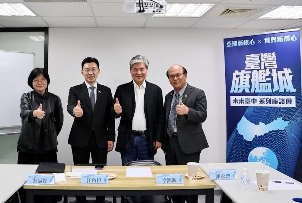 【記者彭勝郎台中報導】立法院副院長江啟臣在台中市特別邀請前內政部長李鴻源HY Lee教授、逢甲大學黎淑婷副校長,以及台中市科技產業園區理事長聯誼會總召集人陳永豐董事長齊聚一堂,進行一場充實又深度滿滿的「焦點座談」,透過產官學不同的專業視角,一起深入探討城市治理的關鍵課題與台中未來發展願景。