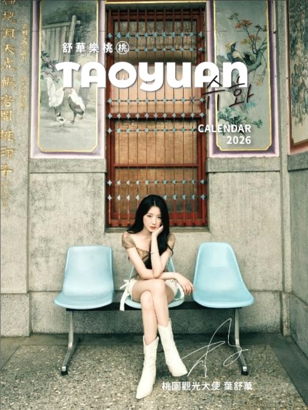 圖1、2、3:全球知名K-pop i-dle舒華擔任桃園觀光大使,2026舒華樂桃桃限量桌曆抽獎。