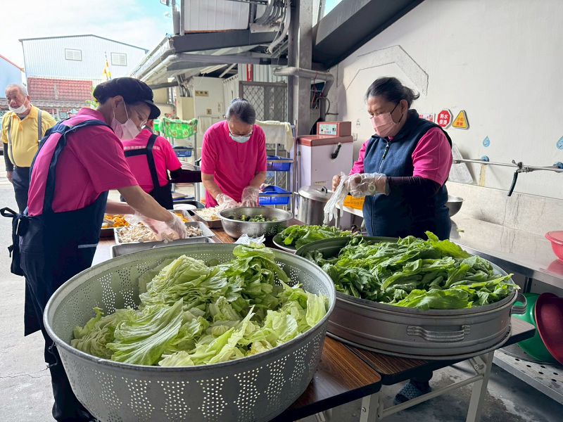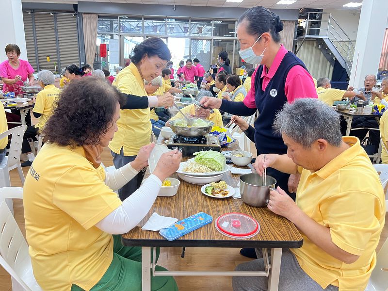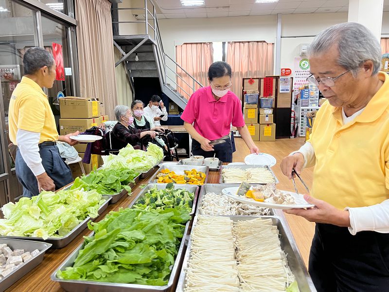 活動當天,志工們一早便投入準備工作,洗菜、切菜、備料分工有序,走進據點便能感受到濃濃的年節氣息與家的溫暖。佛堂內,每張桌子皆擺放迷你瓦斯爐,象徵圍爐團聚的開始。