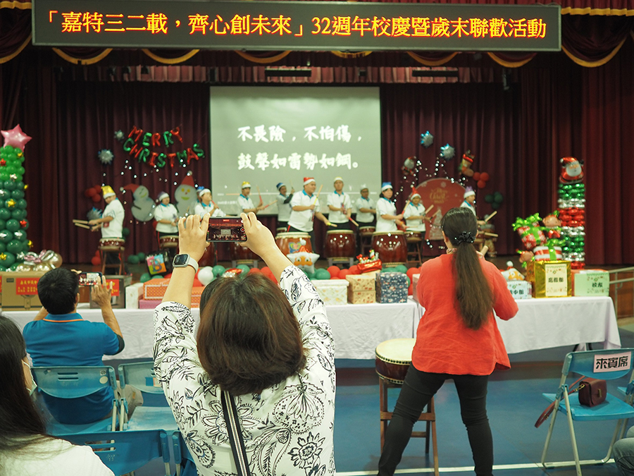 慶祝活動由聖誕麋鹿驚喜送禮揭開序幕,學生在歡笑中感受節慶的溫暖與祝福,隨後的學生社團太鼓隊和班級的歌舞表演,展現長時間反覆練習的成果,舞台上的每一個動作、節奏與笑容,都是學生突破自我、勇敢自信的最佳證明,也讓在場家長與來賓深受感動。