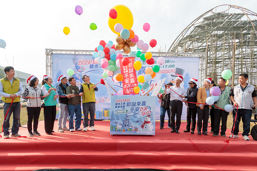 【記者謝敏政嘉義報導】嘉義縣政府迎接歲末最具溫度的耶誕佳節,日前於府前廣場盛大舉辦「2025觀光工廠耶誕派對-耶誕來嘉,平安OH YA!」,集結16家觀光工廠、多個特色商圈,打造一場結合產業、文化與節慶氛圍的冬日嘉年華,縣長翁章梁化身耶誕老人發糖果,吸引大小朋友爭相排隊,感受溫馨氛圍。