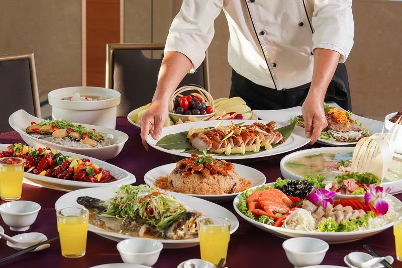 另有中式10人份桌菜16,800元起,匯集多道經典菜色,包括柚子醬沙律龍蝦、蒲燒海鰻米糕、養生燉雞湯等,提供豐盛年節餐桌選擇。