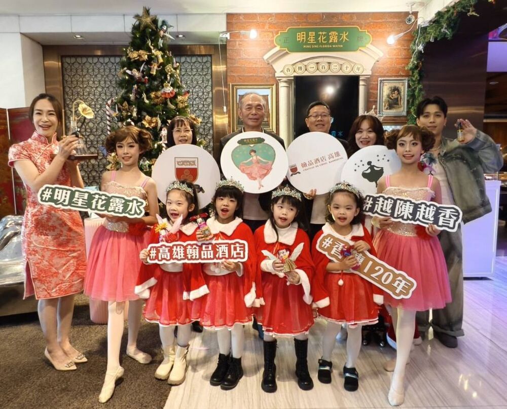 【記者吳峙嵩高雄報導】匯聚鹽埕人文底蘊的高雄翰品酒店,今年耶誕節特地為旅人,準備一份跨越時光的驚喜,力邀即將邁入120週年的國民香氛品牌「明星花露水」跨界合作,啟動「香傳120年」系列活動,透過復刻百年前平安夜的浪漫創舉,在大廳打造全台第一棵有味道的耶誕樹,在玫瑰與茉莉香氣中,開啟一場連結城市記憶的感官旅程。