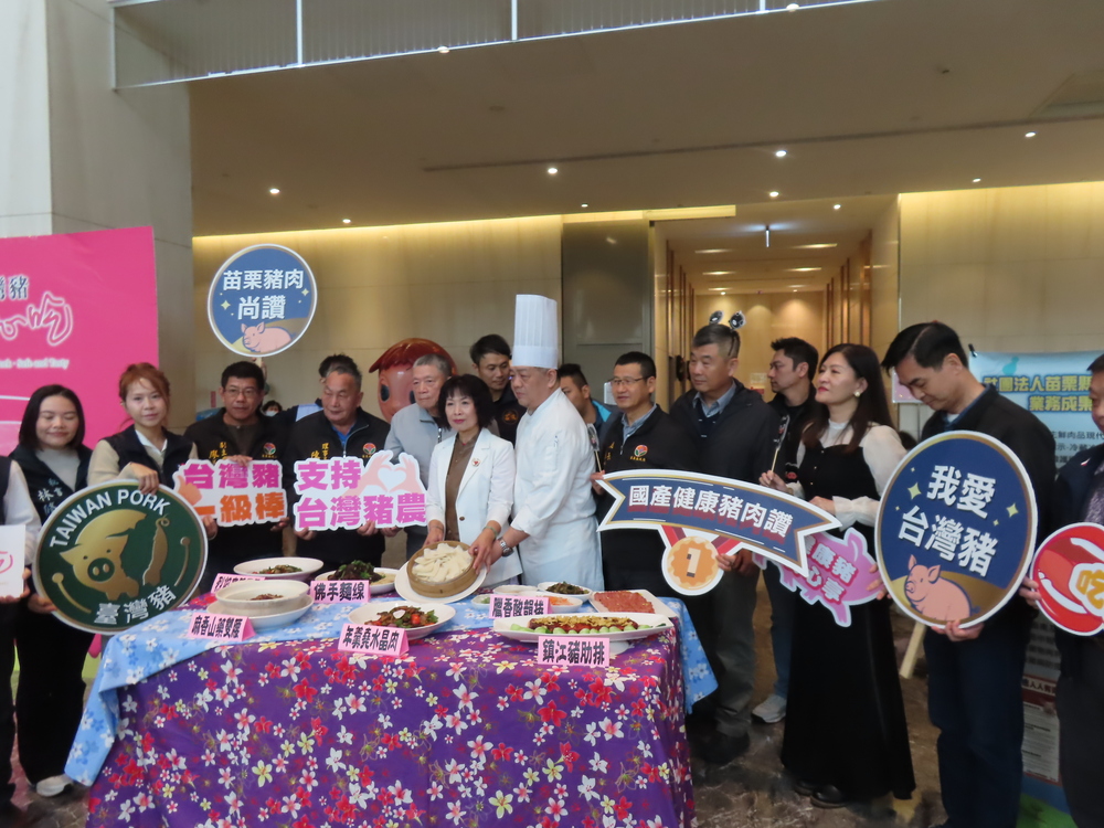 苗栗縣養豬協會26日在頭份市尚順君樂飯店一樓大廳舉辦「台灣國產豬肉與地方品牌畜產品推廣行銷記者會」。