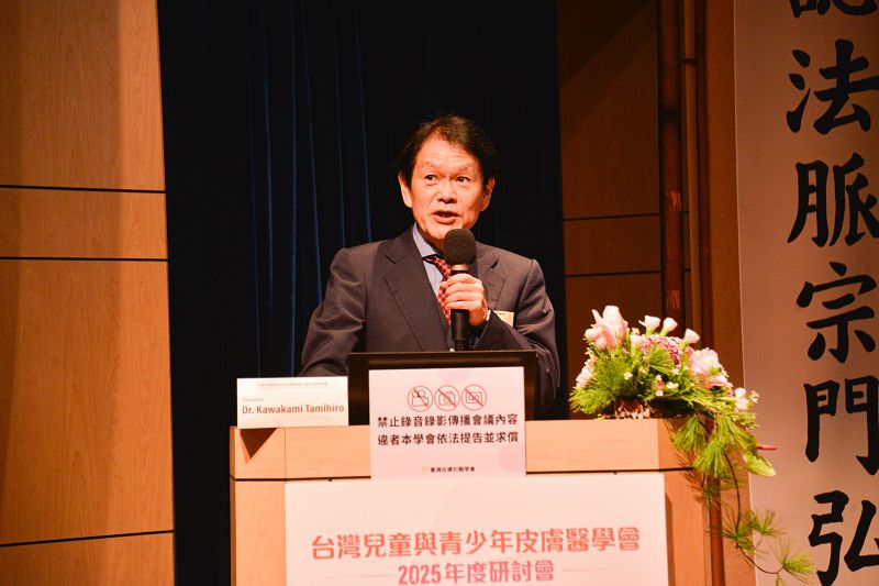 此次研討會涵蓋癌症及其他疾病的皮膚表現、遺傳性皮膚病案例分享、兒少族群常見皮膚病症的照護等。講者從不同臨床面向切入,探討兒童與青少年皮膚疾病在治療與診斷中的經驗。美國哈佛大學Dr.Jennifer Huang指出,隨著新型標靶治療的廣泛應用,癌症病人存活期顯著延長,但治療過程中對皮膚及其附屬器官所造成的影響亦逐漸浮現。她從新型癌症療法引發的皮膚反應、治療相關掉髮現象,以及兒童癌症倖存者成年後角質形成細胞癌風險等面向,說明皮膚不僅是副作用的表現器官,更是觀察治療反應與長期風險的重要指標,皮膚科醫師應及早介入評估與追蹤。日本仙台大學Dr.Kawakami Tamihiro則聚焦於血管炎在兒童與青少年族群的早期診斷與治療,指出該族群在疾病初期常以皮膚表現作為主要線索,但臨床症狀相對不明顯,因此需透過實驗室檢查與皮膚病理結果進行系統性判讀,建立有系統的鑑別架構,有助於臨床早期辨識原發性皮膚血管炎類型,提升診斷精準度。