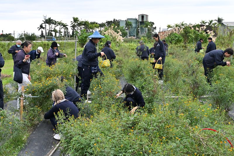 在慈青藍色制服襯托下,滿園鮮橘黃、顯眼又療癒的的小小萬壽菊,飄來一陣陣的花香。雖然天空不時飄下毛毛雨,也不減學員採花的樂趣。兩位緬甸慈青臉上綻放燦爛笑容,在花海中摘下朵朵萬壽菊。其中,翁星雨是隔代教養中長大的孩子,她很感恩慈濟師姑師伯的照顧陪伴,讓她在慈濟路上穩健地前行。「我在社區訪視時看到案家苦狀,才發現自己是很有福的人!我要當一顆善的種子,邀約更多年輕人為世界付出一分力量。」