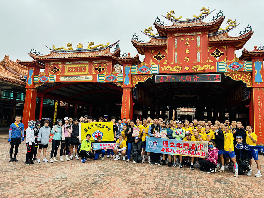 【記者黃永豐台南報導】國立北門高中即將迎來創校 80 週年的重要里程碑,為傳承鹽分地帶堅韌的精神並深化社區連結,校方昨天盛大舉行「北中80、風火輪轉∼慶祝國立北門高中80週年校慶社區巡禮大北門區自行車活動」,校長吳俊憲及家長會長陳俊宏率領百位師生,與同為北中校友的佳興國中校長潘能耀率領學生團隊共襄盛舉,以「1歲1公里」的信念,挑戰全長80公里的壯遊路線,完成繞行環舊「北門郡」6行政區,展現北中學子無懼風雨的剛毅特質。