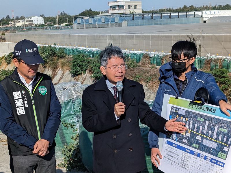 經濟部賴建信次長表示,早在108年當時擔任水利署長,即應立委劉建國邀集前往二崙新庄子大排現地會勘,當時補助應急擋水隔板經費。去年7月凱米颱風造成新庄子大排再度溢堤、潰堤,引發嚴重災情,在劉建國再次邀請會勘並強力要求下,水利署同意將本案納入「縣市管河川及區域排水整體改善計畫」,最終核定中央補助四億元辦理復建與治理工程。