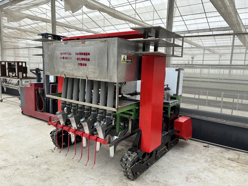 李芳林局長說明丹娜絲颱風造成嘉南等地農業損失慘重,尤其以溫網室設施毀損最為嚴重,截至目前農業局已輔導本轄農友申辦溫網室設施重建201件,面積為42.59公頃,感謝農業部農糧署提高設施補助額度至8成,減少農友負擔可以儘速復建重新投入生產。面對極端型氣候的挑戰,本次災後許多農友也陸續轉型為結構型溫網室設施,除了更為穩固也符合農業生產的需求。特別感謝臺南區農業改良場團隊,輔導本專區建置一貫化自動化農機生產設備,包含自動化育苗生產線、機械化整地整型設備、蔬菜移植機及遙控噴藥機等,從育苗至栽培管理之田間作業過程,減少農業所需勞動力,提升生產效能。