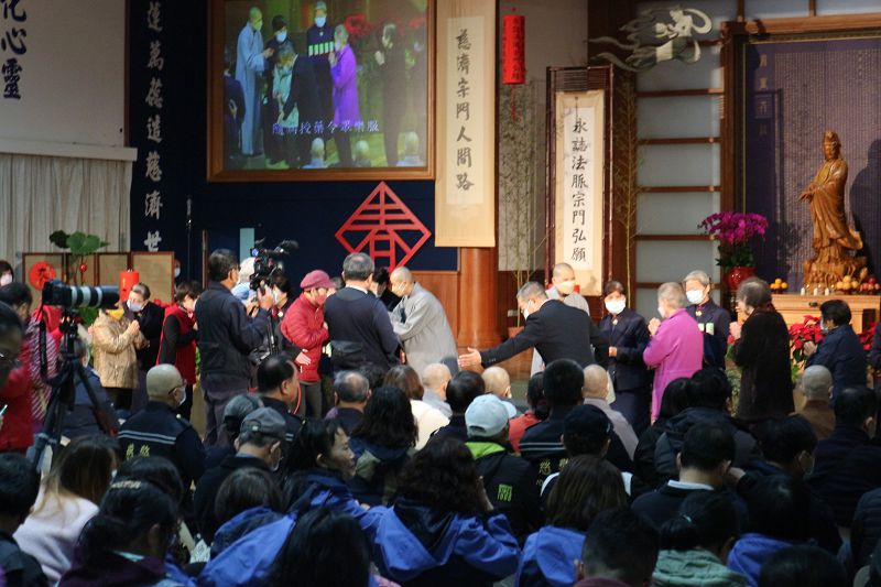 靜思精舍德杭法師、德璒法師帶來證嚴法師以及全球慈濟人的祝福,德杭法師表示,透過大藏經回顧了2025年全球發生的事情,看到了世界上這麼多的災難,雖然災難很多,但是我們也看到了希望,德杭法師表示,九月下旬前往光復進行清掃時,除了慈濟人之外,也看到許多自發帶著打掃工具前來幫忙光復鄉親清掃家園的熱心民眾,搭乘的那班列車,終點不是光復,當列車一抵達光復,全部人都下車了,當時看到的是人與人之間互助的美善及溫暖;德杭法師也邀請在場鄉親每日都能發一善願,讓社會更祥和!