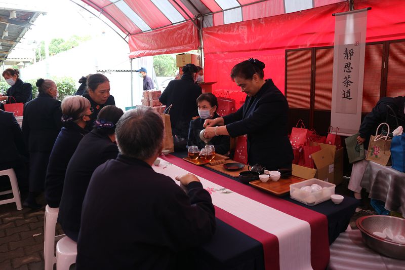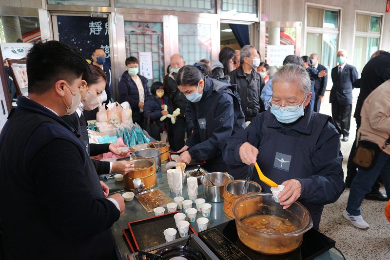 慈濟志工還在外場規畫多個攤位,當參加完內場的活動後,志工於出口處先奉上小點及小杯熱湯,讓大家先暖暖胃,之後再前往餐廳享用志工準備的平安餐;今年邀約了中壢分局的波麗士大人前來進行反詐騙宣導,或是到靜思茶道的茶席歇歇腳,由志工為您奉茶,還有擅長造型氣球的志工當場製作造型氣球與小朋友結緣,想讓慈濟的訊息不漏接?邀您加入慈濟基金會LINE好友,現在還有期間限定刮刮樂活動,能將滿載祝福的小禮帶回家。