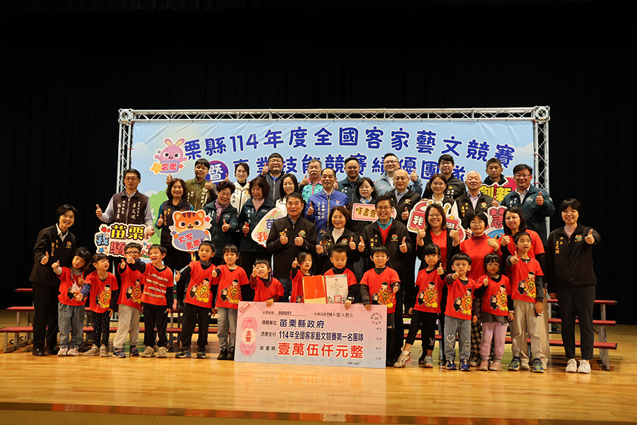 【記者林盈焜、羅玉女苗栗報導】苗栗學子在全國中小學客家藝文競賽表現亮眼,共拿下10項第一名,另有8校獲第二名、4校獲第三名、3校獲第四名,總獲獎數為全國第一,日前縣長鍾東錦頒獎表揚獲獎師生,共計頒發36萬6000元,期勉他們繼續努力,追求卓越,繼續擦亮苗栗客家大縣招牌。