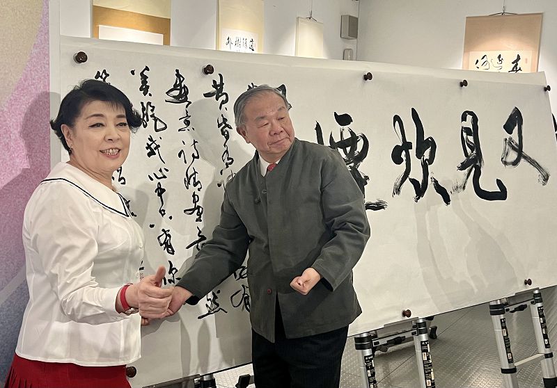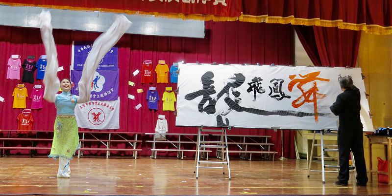 留美舊金山大學等學校的聲樂家簡文秀教授,應邀和張炳煌教授書法和聲樂一起展現,她唱「又見炊煙」張教授同步揮毫,簡文秀嘹亮美好的歌聲,感人的表情,張炳煌流暢有勁的揮毫,同時完成時,贏得滿堂彩。