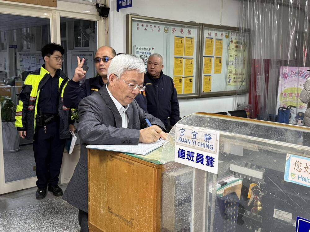 內政部警政署長張榮興2日上午親赴苗栗縣警察局竹南分局,慰勞第一線執勤同仁。