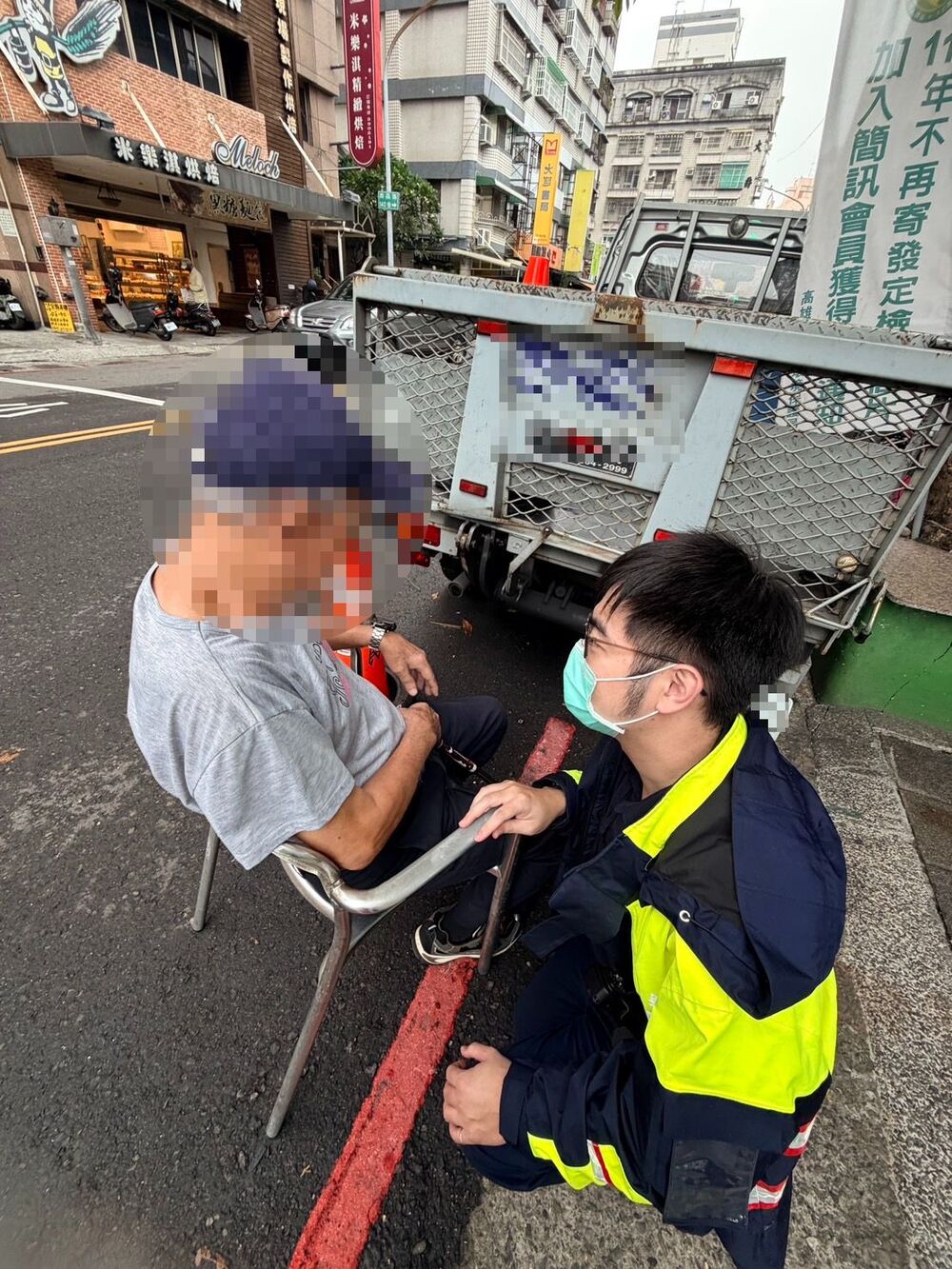 三民二分局覺民派出所警員陳宥愷、鄭亦芸日前接獲通報指稱,有老翁倒臥於路旁,員警隨即趕赴現場處置。抵達後,發現熱心店家已搬出椅子協助老翁休息,鄰近民眾亦提供飲水關懷其身體狀況,場面溫馨。因老翁表達能力受限,員警耐心詢問其住址及家屬聯繫方式,經多方查證,確認身分為80歲黃姓老翁,並成功聯繫其孫女。隨後,員警陳宥愷、鄭亦芸親自護送老翁返家。老翁返抵住處時,妻子急切迎上前關心,並對警方的迅速協助表示由衷感謝。(圖文:記者張福全)