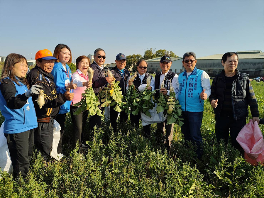 【記者林重鎣台中報導】臺中市大里區夏田里大蘿蔔成熟了!鞭炮聲響起,拔蘿蔔活動在黃國榮副市長的歌聲吆喝下開跑啦!1/4(星期日)夏田里民邀請您一起拔蘿蔔!夏田發展協會曾盛琪理事長(里長)率領全體會員及里民為邀請大家認識自己的家鄉,特別提前播種菜籽種出大蘿蔔,讓幼兒園、長照機構長輩、社區民眾闔家出動一起體驗拔蘿蔔的樂趣,並由會員教大家醃製好吃的醃蘿蔔、菜頭粿等美食,共同分享社區經營的成果。