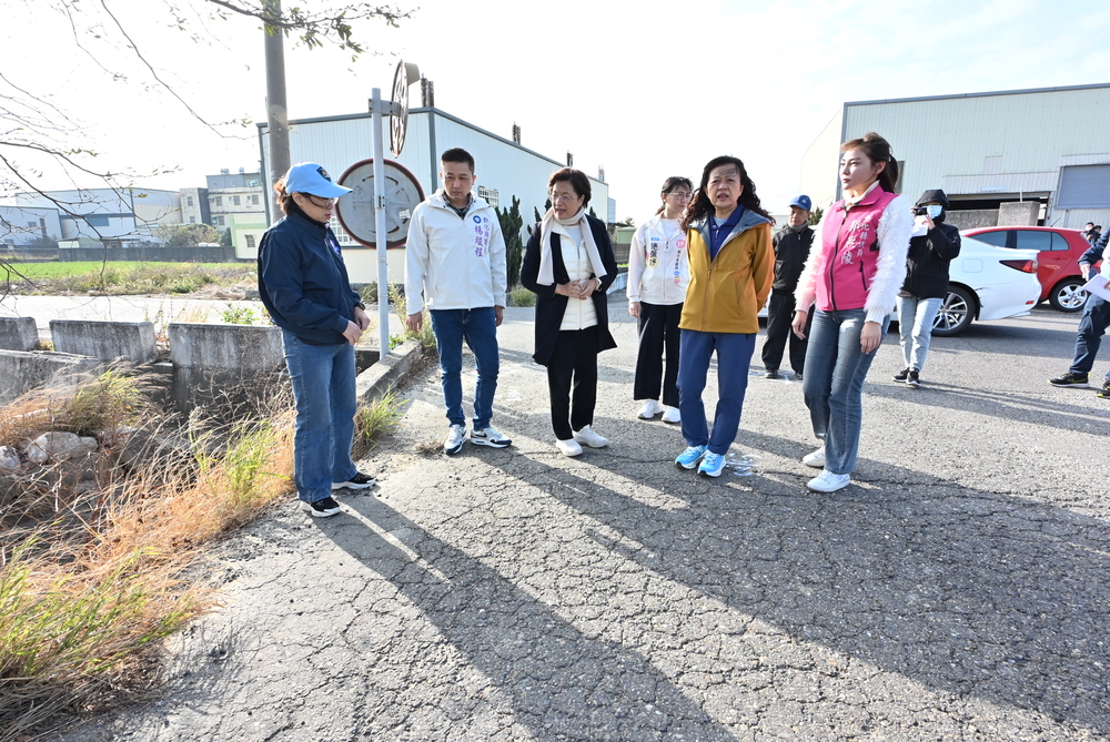 【記者鄭惠珠鹿港報導】鹿港鎮鹿鳴、南勢、頂厝農地重劃區等16條農路因車輛往來頻繁,導致路面龜裂、破損及沉陷,影響民眾及農民耕作通行安全,縣府持續投入經費辦理改善作業。彰化縣長王惠美9日前往頭崙巷臨50-20號(附近)、南勢巷186-18號(南側)、詔安巷79-50號(附近)等三處視察,要求廠商如期如質完成工程,提供鄉親安全通行的道路。