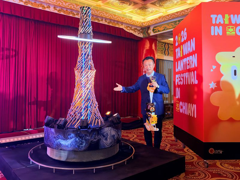 【記者謝敏政嘉義報導】2026台灣燈會主燈「光沐—世界的阿里山」及小提燈「喔熊馬抵嘉」造型亮相!縣長翁章梁9日赴圓山大飯店出席發表記者會,包括交通部次長林國顯、觀光署長陳玉秀及創作藝術家齊聚,熱烈歡迎全台遊客來嘉賞燈。