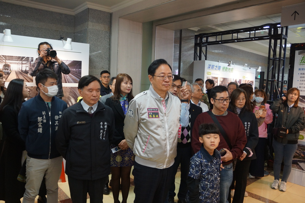 張善政表示,從今天開始兩個禮拜在市府的川堂進行「捷運成果展」,這是在今年年底通車以前最後一次的成果展,希望展現給桃園的鄉親市民朋友在看到冰冷的工程背後,其實是有非常艱辛又溫暖的一面,很多工程人員犧牲了晚上假期與家人團聚時間,為今年年底通車的目標努力趕工,真的非常非常謝謝他們!展示中過去很多次活動,不管是工地的實際的視察,或是招待小朋友和捷運開箱的影片中,看到小朋友都非常非常高興參與活動,很多議員朋友臉上來都充滿了笑容!這是我們希望讓桃園的市民感受到桃園市政府也有能力建造自己的捷運!而且這通車的一天很快就要到來,在桃園的市民對於捷運開拓、城市的發展有更多的期待下,未來各條捷運線市府會將逐步完成,付諸實現,以符合市民的需求。