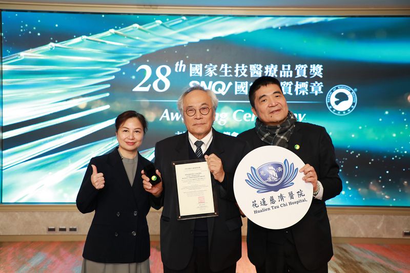 花蓮慈濟醫院1月7日,在象徵臺灣生技醫療界最高榮譽的「國家生技醫療品質獎暨SNQ國家品質標章」授獎典禮,以豐碩的創新成果成為全場焦點,不僅通過嚴格審查,獲得十項SNQ標章;護理部更是繼去年拿下全臺唯一「金獎」後,今年以災難護理專案勇奪護理照護服務類護理領導與管理組「銀獎」。此外,醫院尚有八項品質標章通過續審。花蓮慈濟醫院照護團隊積極精進,向全臺灣展現守護生命的深度與創新的廣度。