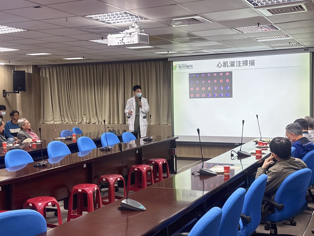2.豐原醫院核醫科黃立壬醫師分享骨骼掃描、心肌灌注掃描及腦質斷層灌注掃描。(豐原醫院提供)