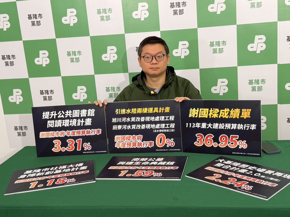 【記者張毅基隆報導】民進黨基隆市黨部13日召開記者會,指稱市長謝國樑早在2025年8月23日即公開表示,將針對重大建設執行率偏低進行檢討,但至今已超過100天、約4個多月,進入新的一年,市民仍未看到任何一份具體、完整的檢討成果報告。