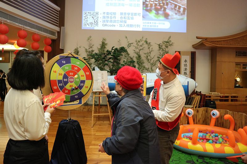 慈濟志工除了在外場規畫許多攤位與鄉親們互動,有靜思書軒小志工快閃合唱表演、九宮格投球或吸鐵釣紅包等趣味小遊戲,慈濟青年志工們也布置了心願館,邀請鄉親入內坐坐歇腳享用茶點、欣賞日本舞或是古箏的表演外,還能寫下自己的心願,為新的一年開啟新氣象!二樓的空間則是規畫DIY手作燈籠、粉彩畫體驗、手作保養品體驗等活動,讓大小朋友都能自己動手做出屬於自己獨一無二的作品,並能帶回家作紀念!