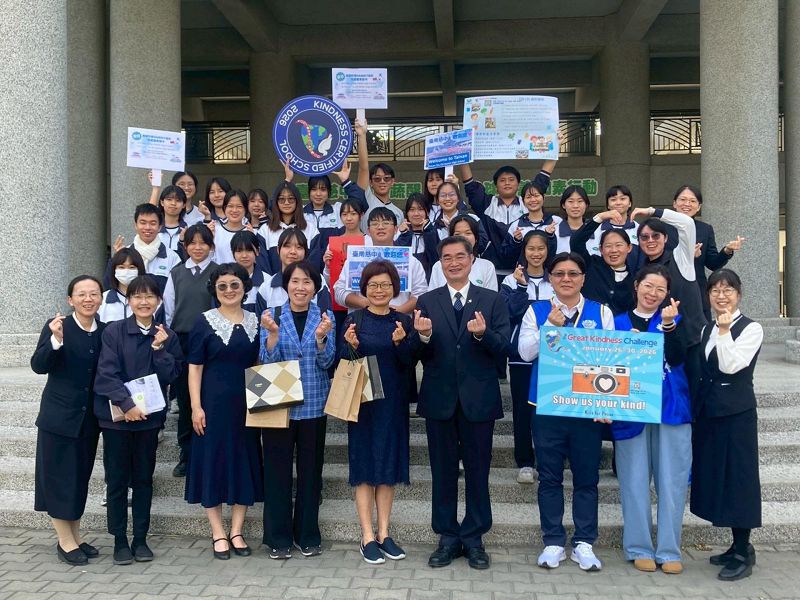 活動中,英文科宜珊老師也介紹由美國南加州非營利組織 Kids for Peace 發起的「全球慈悲大挑戰」(The Great Kindness Challenge),臺南慈中已參與五年,今年亦邀請韓國來賓一同響應,透過節能、省水等環保行動,從日常生活開始實踐,為地球盡一份心力。