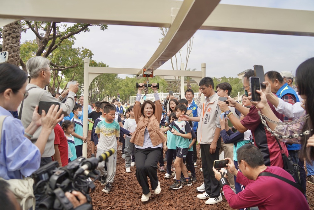 啟用當天,周縣長與親子一同開箱三座不同難易度的主題遊戲設施,並陪孩子體驗溜滑梯,現場笑聲不斷。她表示,屏東持續走在共融遊戲場前端,希望透過安全、多元的設計,讓孩子在遊戲中快樂成長,也讓家長更安心。